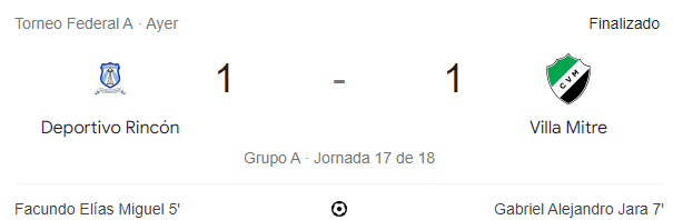 | 6 | Deportivo Rincon | 16 | 5 | 3 | 8 | 13 | 17 | -4 | 18 |